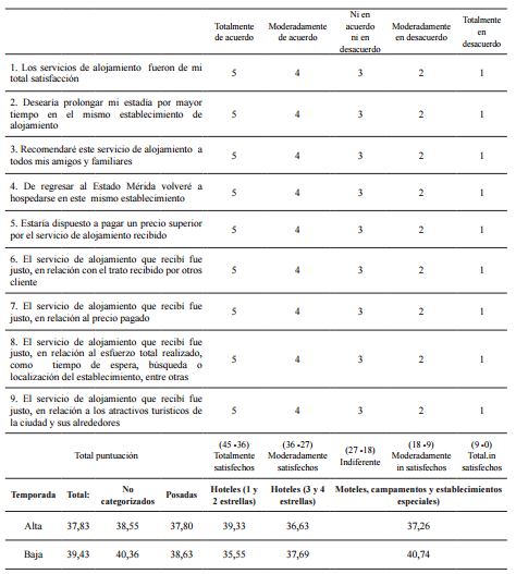 También para el caso de la escala de satisfacción del usuario se realizaron entrevistas personales de tipo noestructurada, libre o no dirigida, dirigidas a gerentes de empresas de alojamiento en el estado Mérida y con algunas personalidades vinculadas a la actividad turística del estado en particular y del país en general (Presidente de la Cámara de Turismo, el Presidente de la CORMETUR y Miembros de la Federación de Hoteles de Venezuela –FENAHOVEN-), así como investigadores en materia turística de la Universidad de Los Andes (Venezuela), del Hotel Escuela de Los Andes (Venezuela) y de la Universidad de La Laguna (España), seleccionados de forma intencional, los cuales ayudaron a la consideración de las dimensiones a ser incluidas en la escala.