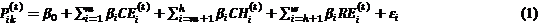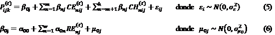 Teniendo en cuenta estos niveles, y siguiendo lo formulado en Goldstein (2011) y Hox (2010), para el modelo (1) se emplean tres MJM. El primero, considera solo los efectos aleatorios a través de los términos de perturbación de error, para el país . en la competencia ., de la siguiente forma:
