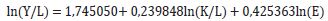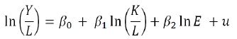 (3)Donde Y/L es la productividad laboral. El correspondiente modelo econométrico de (4) es