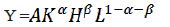 Y: producción; K: capital físico; H: capital humano; L: trabajo; A: productividad; elasticidad producto del capital físico, y : elasticidad producto del capital humano.