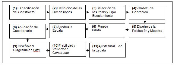 Para la elaboración de la escala de medición del constructo percepción del entorno, se siguió la metodología propuesta por Zapata y Canet (2008) compuesta por once actividades (ver Figura I)