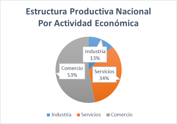 Según el Código Industrial Internacional Uniforme de todas las actividades económicas, el sector manufacturero en Colombia se clasifica de la siguiente manera: 1. Alimentos y bebidas; 2. Algodón, fibras, textiles, confecciones, cuero, calzado y marroquinería; 3. Madera y muebles; 4. Papel, cartón y actividades de edición e impresión; 5. Refinación de petróleo, químicos, y productos de caucho y plástico; 6. Minerales no metálicos; 7. Metalmecánica y maquinaria; 8. Otros Rubros. En Colombia, según la Encuesta Anual Manufacturera 2015 el 73,9% de los establecimientos manufactureros está concentrado en actividades de confección de prendas de vestir, excepto prendas de piel, elaboración de otros productos alimenticios y fabricación de productos de plástico. A continuación, se muestra en la Figura I, la estructura productiva por sectores en Colombia.