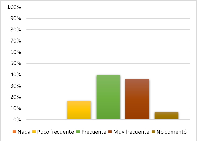 Cuando se les preguntó la frecuencia con la que utilizaban la paquetería Office en la elaboración de sus deberes académicos, se muestra en el Gráfico VI que el 17% señala que es poco frecuente que la emplee, contra el 77% que responde que, al ser una herramienta de gran utilidad, su uso es frecuente y muy frecuente (40% y 37% respectivamente).