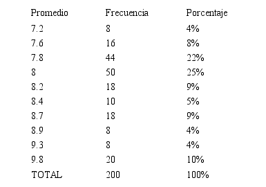 Cuando se les preguntó el promedio académico que tenían hasta ese momento en su licenciatura, las respuestas van desde 7,2 hasta 9,8. El promedio es la suma de todas sus calificaciones divididas entre el número de materias que han cursado hasta ese momento (ver Tabla IV).