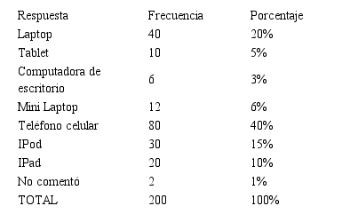El dispositivo electrónico preferido por los participantes en este estudio es el celular, el cual se ha convertido en una necesidad primordial para los jóvenes, al tener múltiples usos, desde escribir un mensaje hasta buscar información de diversa índole, el celular, más que un medio de comunicación es un estilo de vida para los universitarios.