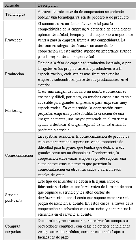 2.1. Tipología de los acuerdos de cooperación empresarial