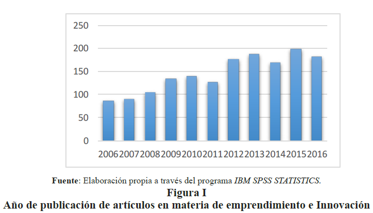 Teniendo en cuenta el aumento en la publicación sobre emprendimiento y la innovación en el período de tiempo 2006 - 2016 se observa el incremento del interés de la comunidad científica y la sociedad, sumado a la unión de su fuerza de investigación y a una mayor comprensión de la importancia de estas temáticas (ver Figura I).