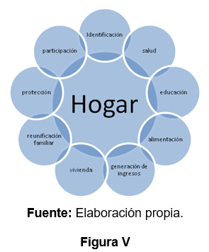 Siguiendo este planteamiento oficial, el cese de la vulnerabilidad es asumida desde el restablecimiento (tercer momento) y plantea un escenario evaluativo centrado en diez derechos (ver Figura V), la mayoría considerados fundamentales en la Constitución colombiana, derechos que por demás toda persona debería tener garantizados independientemente de su estatus como víctima, condición social, género, etnia, entre otros.