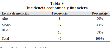 Dentro de esta categoría de análisis, los empresarios perciben que la incidencia del ejercicio investigativo en la escala de medición fue medio, en su mayoría (43%), como se muestra en la Tabla V, argumentando que ayudaron a orientar la implementación de las NIIF a través de formulación de políticas y estrategias acordes a la estructura de las organizaciones y ayudaron a minimizar costos por asesorías.