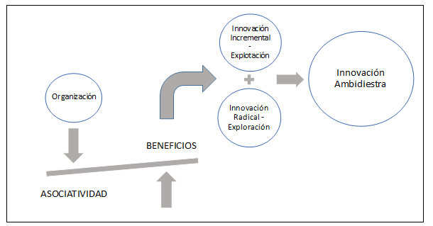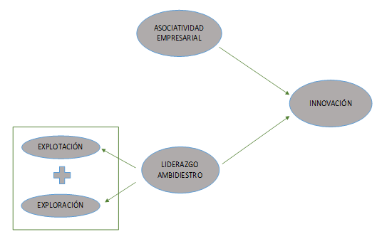 Estudios previos demuestran que la innovación es un requisito esencial para la competitividad de las empresas, se encuentran estudios que investigan los antecedentes y sus consecuencias. Asimismo, se revelan las relaciones entre los conceptos de liderazgo, innovación y asociatividad, los cuales son importantes para los académicos. De acuerdo con el modelo conceptual, se propone que las empresas que poseen actividades de asociación y además poseen un liderazgo ambidiestro, llevan a las organizaciones a lograr mejores resultados de innovación ambidiestra.