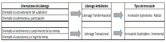 Consecuentemente, la innovación debe ser de carácter no solo explotador de los procesos cotidianos de la organización, sino de carácter exploratorio, para lo cual debe desarrollarse un liderazgo transaccional y un liderazgo transformacional, lo que es llamado liderazgo ambidiestro (Rosing et al., 2011), ya que de una manera complementaria fomentan el comportamiento innovador de cada uno de los participantes de un equipo.