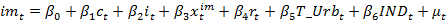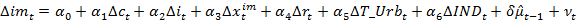 Donde la notación indica im el nivel de importaciones, c el nivel de consumo privado, i la inversión, xim las exportaciones como capacidad para importar, r es el tipo de cambio real,