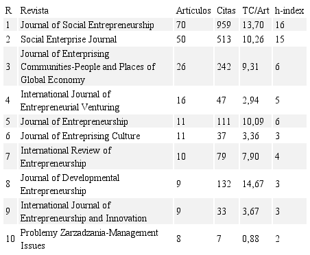 Las publicaciones relativas a emprendimiento social pueden ser encontradas en una amplia variedad de revistas, de distintas áreas de conocimiento, y con indicios de calidad muy dispares.