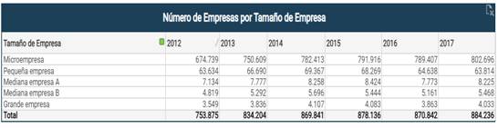 En la Tabla 1, se muestra de acuerdo a la ENESEM 2016 – 2017 (INEC, 2019), el número de empresas por tamaño, desde micro empresas, pequeñas, medianas A, medianas B y grandes empresas, desde los años 2012 hasta el 2017, y cómo han ido creciendo o decreciendo en el tiempo.