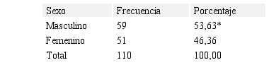 En la Tabla 2, con respecto al sexo de los niños y niñas víctimas de maltrato infantil, resultaron 53,63% (59) masculino y 46,36% (51) femenino, con una diferencia significativa (p<0.01) en el sexo masculino. En forma similar en Colombia también existe un predominio de maltrato en los niños, explicado por el patrón de conducta agresiva, negativista, desafiante y desobediente ante los padres y figuras de autoridad, que generan la violencia como un mecanismo de control (Rizo, 2014;Monsalve, Mora, Ramírez, Rozo y Rojas, 2016; Romero, Villacis y Jara, 2016).