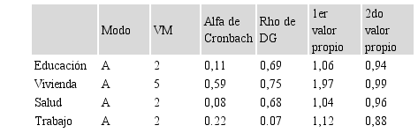 En este caso, como se observa en la Tabla 3, las condiciones de unidimensionalidad se cumplen satisfactoriamente. Del mismo modo los requisitos en términos de cargas y comunalidades de cada uno de los indicadores son alcanzados (ver Tabla 4).