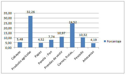 Asimismo, los comerciantes tienen una especialidad para desarrollar la actividad del comercio informal, como se presenta en el Gráfico IV, donde la comercialización de productos agrícolas es la actividad más desarrollada por el comerciante informal que representa el 32,3%; seguido de carnes, frutas, verduras en un 24,5% y prendas de vestir en un 11%.