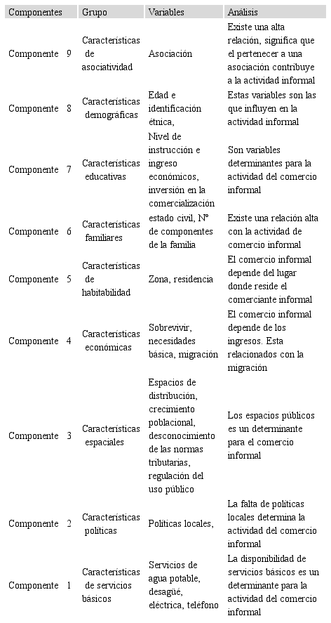 3.6.1 Aplicación del análisis factorial para identificar los factores de causalidad del comercio informal