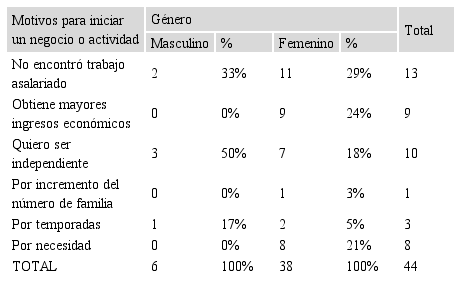 3.4. Factores motivaciones de la actividad del comercio informal y su relación con el género y los medios de desarrollo