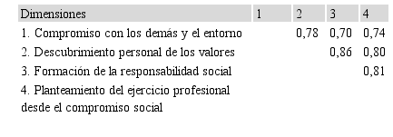 En la Tabla 4, se encuentra la clasificación porcentual en relación a la autopercepción de las responsabilidades sociales que reconocen poseer los estudiantes universitarios. En relación al grupo de personas que se clasifican en no responsables socialmente, que cumplen la condición de territorio urbano, la mayor concentración se encuentra en la dimensión: Compromiso con los demás y el entorno (8,16%); en cambio el mismo grupo de personas que cumplen la condición de territorio, pero ahora declaran ser socialmente responsable, el mayor valor se encuentra en la dimensión: Descubrimiento personal de los valores (57,83%).