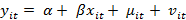 Las ecuaciones 2 y 3 reflejan la nomenclatura de los Modelos Efectos Fijos (MEF) y Efectos Aleatorios, respectivamente. El MEF parte del supuesto que el coeficiente de la constante varía a través de los agentes o del tiempo, además permite analizar las variaciones intertemporal y/o transversales por medio del término de intercepción, como los modelos ANCOVA. Se asume que si CORR (ui, X) es distinto de cero, el MEF sería el modelo adecuado. Por otro lado, los Modelos de Efectos Aleatorios es también conocidos como Modelo de Componentes de Error, y considera a “ui” como variable aleatoria, en contraste con el MEF este modelo no crea variables dicotómicas (), sin embargo, los componentes “ui” se dejan que varíen de manera aleatoria tanto para los agentes como para el tiempo.