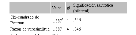 Aproximadamente, un cuarto de la población (ver Tabla 8) se muestra no interesada en participar del desarrollo de las actividades turísticas, indistintamente del nivel de formación, de esta manera se evidencia que no existe correspondencia entre el interés en las actividades turísticas y su nivel de formación; reflejado de igual forma en la Tabla 9, con los valores de Chi-cuadrado de 1,387 y razón de verosimilitud de igual valor, y finalmente, el nivel de significancia de 0,846.