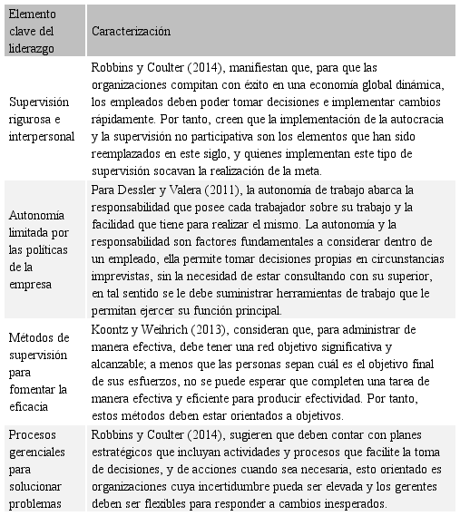 Martínez-Ventura, et al. (2017) consideran que las organizaciones deben brindar orientación y apoyo a los empleados para alinear sus metas con las metas generales de estos; por lo que, se debe mantener un estilo de liderazgo consistente para las necesidades de los procesos organizacionales. En consecuencia, estas empresas deben guiarse por estilos de liderazgo participativo, que transformen los procesos, tomando como uno de los pilares básicos de sus actividades empresariales al empleado, así como comprender a los líderes en sus escenarios de organización de acción, pero también entender la competitividad.