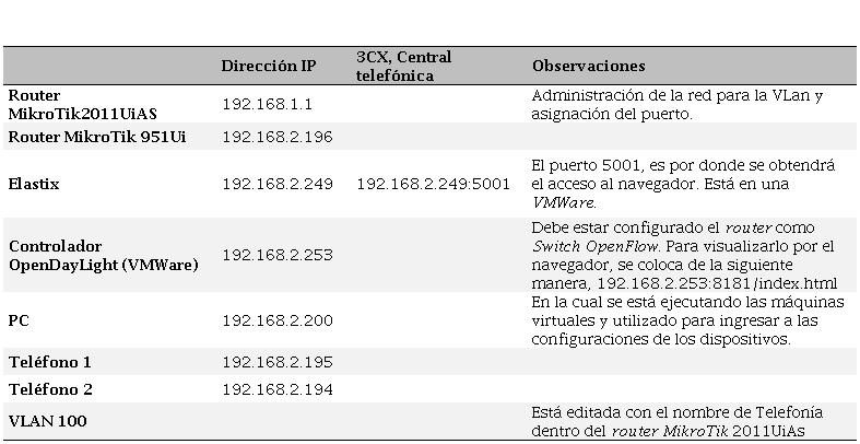 En el Cuadro 5, se pueden visualizar las direcciones IP asignadas a los equipos (routers, teléfonos, laptop), máquinas virtuales y la central telefónica. A continuación, se muestran las direcciones aplicadas en la Figura I. Los teléfonos recibían direcciones DHCP.