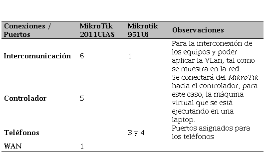 Se descargan los paquetes Openflow en la página https://mikrotik.com/download y se los instala en ambos routers, arrastrándolo hacia su interfaz, cabe recalcar que, se tiene que verificar primero la versión del router, para poder descargar los paquetes correspondientes. Dentro de la opción Openflow, se agrega al router como switch, esto se realiza para ambos routers, con el fin de poder implementar la VLan y visualizarlos en el Opendaylight. Para interconectar al controlador con el router se usó el puerto 5 del MikroTik2011UiAS. En el puerto 6 del mismo, se crea la VLan 200 llamada “Telefonía”, que irá conectado al router 951Ui al puerto 1, para la intercomunicación entre los “swtiches”. En el router 951Ui se habilitaron los puertos 3 y 4 para los teléfonos y para la VLan el puerto 1. En la Figura I, se divisará la red con sus respectivas conexiones.