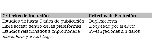Si bien comprender aspectos básicos y panoramas referentes a la tecnología Blockchain resulta extenso, se tienen técnicas y métodos que permiten filtrar la información que se necesita, debido a eso se realizó un análisis sistemático del estado del arte de la tecnología descrita en este estudio, a través de un metaanálisis que acompañado de criterios de inclusión y exclusión permitieron obtener información útil y verídica que fue usada como material de referencia para comprender los conceptos, operación y beneficios de la tecnología usada como objeto de estudio.