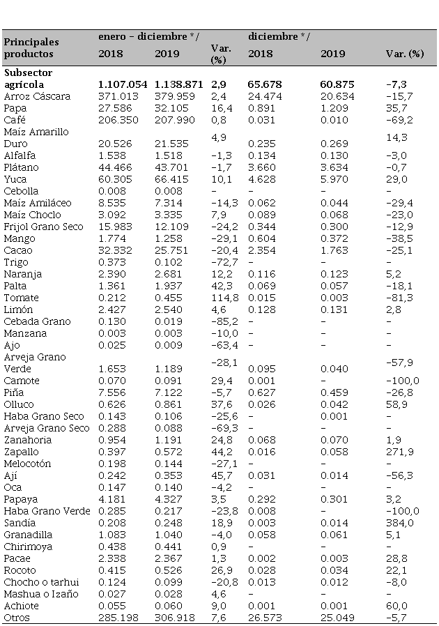 La agricultura, es eminentemente significativa para el progreso y desarrollo del país, para ello es importante conocer la importancia de su incidencia y potencial de cada una de las regiones. Esto se sustenta bajo una perspectiva de tener una agricultura bien materializada y en condiciones óptimas, que permita proveer alimentos a la población. Una de las características más importantes de la actividad económica de la región Amazonas, es resaltar la dinámica de sus principales cultivos, expresa a partir de la producción de café, cacao, plátano, arroz, papa, maíz, entre otros (ver Tabla 2).