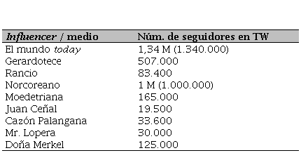 Varios de los influencers del mundo cultural español, que desarrollan su actividad en Instagram y Twitter, realizaron una campaña viral difundiendo los premios de los diferentes retos (o challenges). Los influencers participantes y sus seguidores, así como el nivel de impacto métrico, se representan en el Cuadro 2, analizado con el hashtag #lagarduñaexiste a partir de los datos obtenidos con Audiense.