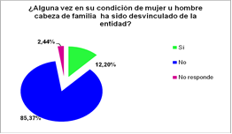 Es decir, que en este caso la condición de ser cabeza de familia no es un impedimento para permanecer en el cargo. Así las cosas, se ha considerado que el hecho de tener tales responsabilidades familiares, no constituye dentro de las alcaldías del Atlántico, un factor de discriminación laboral, que le dificulte a los funcionarios conseguir y permanecer en su empleo. Con lo cual, la respuesta al interrogante planteado, que si por su condición de mujer o padre cabeza de familia ha sido desvinculado de la entidad donde labora (ver Gráfico IX), la mayoría (85,37%) contestaron que no.