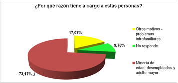 A continuación, se procedió a preguntarles cuáles eran las razones por las que tenían en la alcaldía personas a su cargo en condición de madre o padre cabeza de familia; la encuesta evidenció que en su mayoría, un 73,17% era por ser menores de edad, desempleados o adultos mayores, tal como se aprecia en el Gráfico XIII.