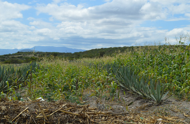 La enorme demanda de materia prima ha generado incluso la aparición de ilícitos como el robo de piñas de maguey maduras. En algunas de las principales áreas de cultivo, se ha dado el caso de la sustracción nocturna de piñas de los campos de cultivo que se encuentran a pie de carretera. Además del aprovechamiento de especímenes silvestres, el abasto proviene, en su mayoría, de plantaciones de maguey espadín imbricadas con maíz (ver Figura III), de por lo menos siete años de antigüedad. Sin embargo, las existencias no son suficientes para abastecer al mercado.