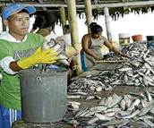 Esta producción se divide en dos partes, la primera, es la evisceración de la pinchagua que se la lleva a la fábrica para la sardina en lata; y la otra parte, es el desperdicio que se transporta a la fábrica para realizar harina de pescado.