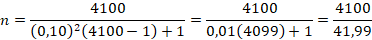 En donde: n= muestra; N= población; E= Error muestral, que será del 10% = 0,10; y el resultado obtenido es el siguiente: