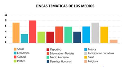 Al concluir el estudio, se identifica que los medios aportan al desarrollo regional, y puntualmente lo hacen a través de campañas y programas de concientización en temas medio ambientales, igualdad, derechos humanos, cuidado al cuerpo, paz, perdón y reconciliación, estos abordajes temáticos se distinguen en los temas centrales de los programas, artículos, contenidos, fotografías y producción audiovisual que ellos reconocieron en los grupos focales cuando se les preguntaba por las líneas temáticas de sus programas.