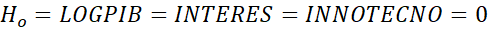 Es decir, LOGPIB, INTERES, INNOTECNO no son exógenas débil en el modelo de demanda transaccional de dinero para Colombia 1994(I) - 2019(IV).