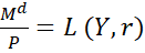= Cantidad de dinero; L= Función de preferencia por la liquidez; r= Tasa de interés: