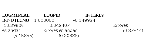 , entendiéndose como “la imposición de una restricción lineal sobre uno o algunos de los coeficientes de la matriz de ajuste” (p.33-34). Así, para el caso sobre demanda transaccional de dinero en concreto, se aplican restricciones a las variables LOGPIB, INTERES, INNOTECNO, y se pretende demostrar que estas son exógenamente débiles ante la demanda de saldos reales LOGM1REAL.