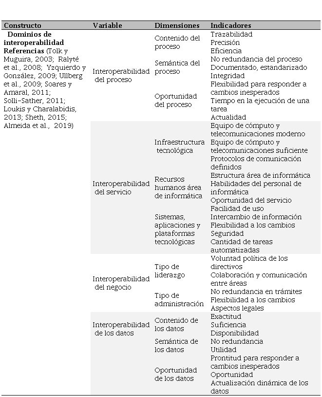 La interoperabilidad se produce cuando diversas aplicaciones y plataformas digitales pueden intercambiar datos, interpretarlos y facilitar su disponibilidad a los usuarios y grupos de interés (Zapata y González, 2009; Banco Interamericano de Desarrollo [BID], 2019). En ese sentido, la interoperabilidad es definida como: “La habilidad de dos o más sistemas o componentes de intercambiar información y utilizar la información que ha sido intercambiada” (Institute of Electrical and Electronics Engineering [IEEE], 2000, p.582).
