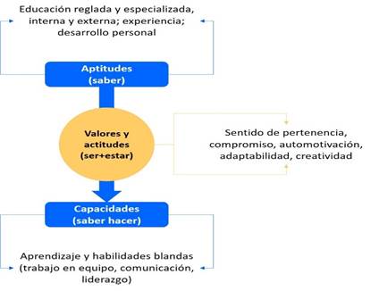 En ese marco, es primordial reconocer que no solo las aptitudes (saber) de los colaboradores juegan un papel elemental en su gestión; es preciso considerar que estas se encuentran permeadas por los valores y las actitudes (ser+estar) y que están asociadas a elementos de gran valía dentro de las organizaciones, como lo son el sentimiento de pertenencia y compromiso, automotivación, satisfacción, sociabilidad, flexibilidad, adaptabilidad y la creatividad.