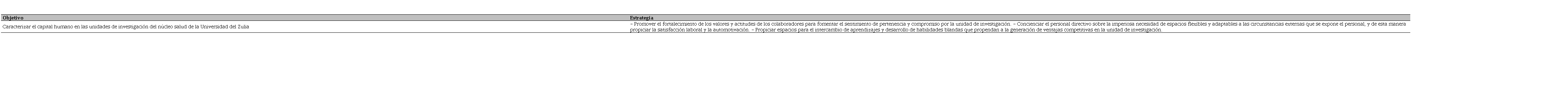 Con base en la Figura I, a continuación, en el Cuadro 3 se muestran las estrategias para la gestión del capital humano en las unidades de investigación del núcleo salud de la Universidad del Zulia en Venezuela.