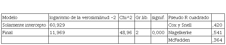 Para comprobar la calidad del ajuste de los valores estimados por el modelo con respecto a los valores observados, se usó la prueba Chi-cuadrado. En la Tabla 4, se observa que la desviación muestra un p>0,05; por tanto, se señala que el modelo de regresión donde se considera que la gamificación influye en la comprensión lectora, es válido y aceptable.