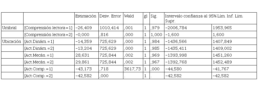 De acuerdo con los resultados que se muestran en la Tabla 5, para las actividades de componentes el resultado de la prueba de Wald es 3617.7; el cual es superior al punto de corte de 4; además, el nivel de significancia es 0.00 inferior a 0.05; por tanto, el factor actividades de componentes de la gamificación es el que tiene mayor incidencia en la comprensión lectora.