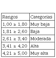 Los datos recogidos de la opinión de los encuestados se presentan en la Tabla 1, interpretándose con medidas de tendencias central, apoyado en un baremo de interpretación de información.