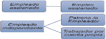 La terminología en la metodología del Instituto Nacional de Estadísticas y Censos (INEC, 2018), en la categoría de ocupación, que es la relación en la que una persona ejerce su trabajo, se han establecido las siguientes: a. Patrono, se considera como tal a aquellos que trabajan sin relación de dependencia, es decir, que son únicos dueños o socios activos de la empresa y emplean como mínimo una persona asalariada en forma permanente; b. Trabajador por cuenta propia, se refiere a los trabajadores que desarrollan su actividad utilizando para ello, solo su trabajo personal, es decir, no dependen de un patrono ni hacen uso de personal asalariado, aunque pueden estar auxiliados por trabajadores familiares no remunerados. También se incluyen aquí los socios de cooperativas de producción o de sociedades de personas que no emplean asalariados.