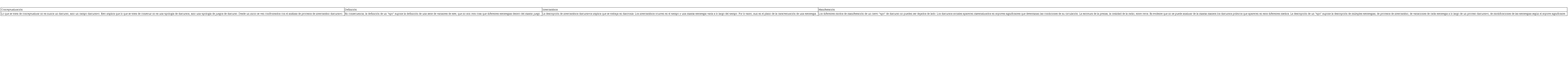 a. En primer lugar, lo que se trata de conceptualizar no es nunca un discurso, sino un campo discursivo.