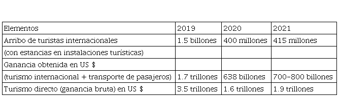 La pandemia de la Covid-19 causó una interrupción significativa en el turismo internacional, además de pérdidas económicas debido a la no existencia de financiamiento en las empresas turísticas y de empleos en muchos países, así como significativos desastres en el sistema de salud.